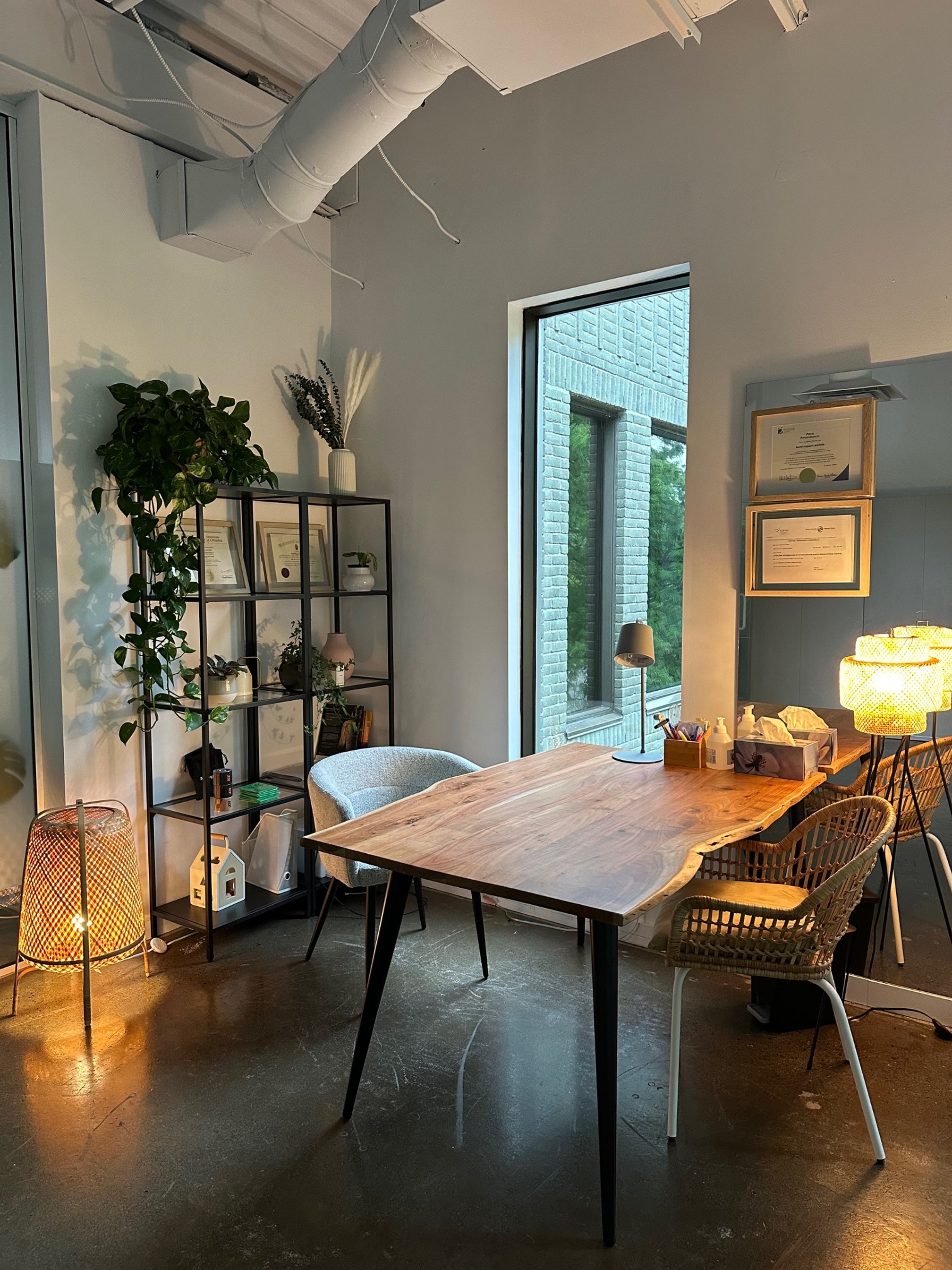 Retirer vos chaussures si possible et prendre place dans la salle d’attente devant vous. Le local se situe au fond, les portes vitrées.